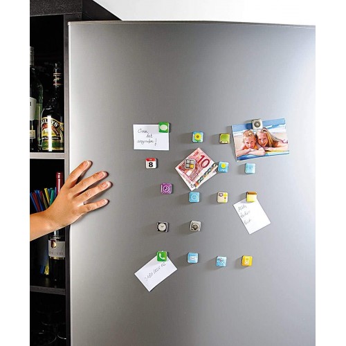 Buzdolabınızda, ofis masanızda ya da diğer herhangi bir metal yüzeyde kullanabileceğiniz bu magnetler ile tüm ajanda notlarınızı, iphone galerinizdeki resimlerinizi, iPodunuzdaki şarkılarınızın sözlerinizi tutturabileceksiniz.